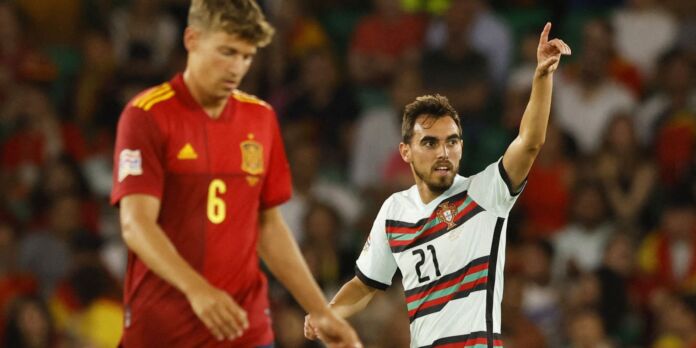 Porém, Horta empatou para Portugal a oito minutos do final do jogo, deixando a defesa espanhola para trás para receber um cruzamento preciso do lateral João Cancelo dentro da área e colocar um chute no meio do gol de Unai Simon.