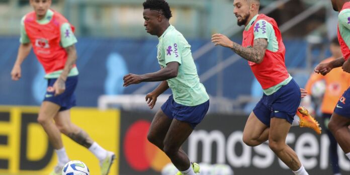 O Brasil encara a Guinè, às 16h (horário de Brasília) de sábado (17, próximo sábado (17), no RCDE Stadium, em Barcelona. Pela primeira vez em 109 anos de história, o escrete canarinho entrará em campo com o uniforme totalmente preto. A iniciativa faz parte de uma série de ações organizadas pela CBF para combater o racismo, após o atacante Vinicius Júnior ter sido alvo de ataques racistas pela 10ª vez no Campeonato Espanhol, no dia 21 de maio. Os insultos foram proferidos por torcedores na derrota do Real para o Valência por 2 a 1, em Valência.