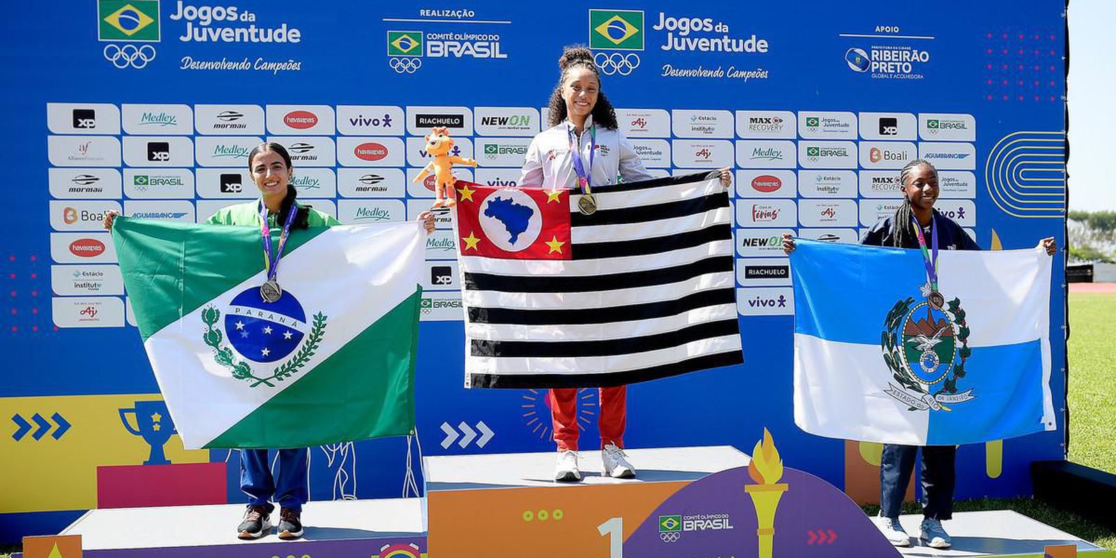 O estado de São Paulo está na liderança do quadro de medalhas da edição 2023 dos Jogos da Juventude, que acontecem em Ribeirão Preto (SP). Concluídas as provas de atletismo, badminton, ciclismo, ginástica rítmica, taekwondo e wrestling, os paulistas conquistaram 16 ouros, 15 pratas e oito bronzes. Ao todo, são 39 pódios.