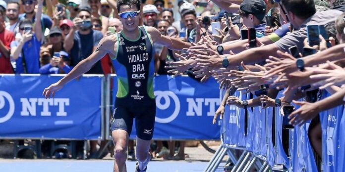 No retorno do Brasil ao circuito mundial de triatlo, o desfecho foi histórico. Neste domingo (15), Miguel Hidalgo, de 23 anos, venceu a etapa de Brasília da Copa do Mundo da modalidade, evento que marcou a volta do país como sede de uma competição deste porte depois de 19 anos. Foi a primeira vitória de Hidalgo em um torneio deste tipo. A competição vale pontos na classificação para a Olimpíada de Paris ano que vem. A contagem começou em 27 de maio de 2022 e vai até 27 de maio de 2024. Atualmente Hidalgo é 11º do mundo no ranking da temporada.
