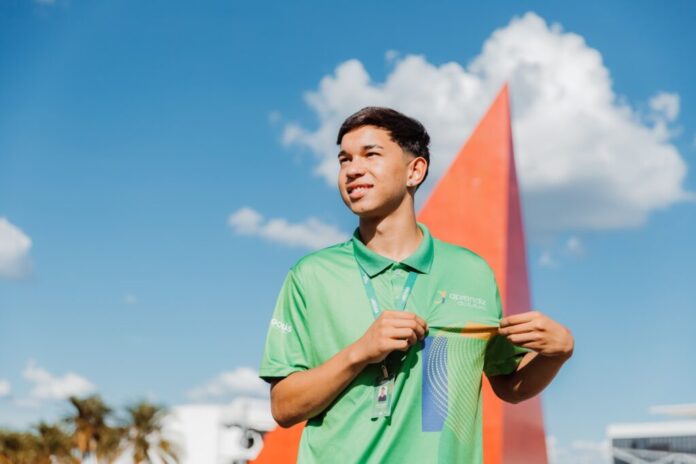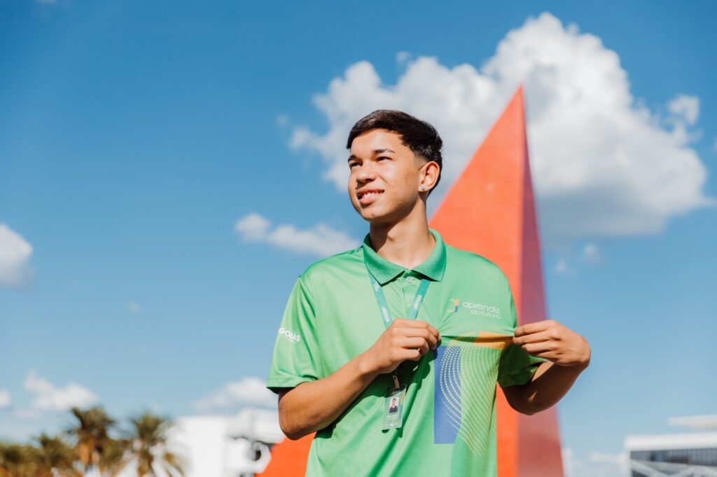 Jovem com uniforme do Aprendiz do FuturoJovem com uniforme do Aprendiz do Futuro