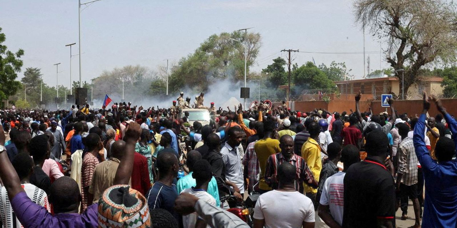 No domingo, apoiadores da junta queimaram bandeiras e atacaram a embaixada francesa na capital do Níger, Niamei, levando a polícia a disparar gás lacrimogêneo em resposta.
