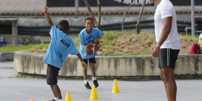 Rio de Janeiro (RJ), 19/05/2023 – Aula de skate para crianças na Vila Olímpica da Gamboa. Foto: Fernando Frazão/Agência Brasil – Fernando Frazão/Agência Brasil
