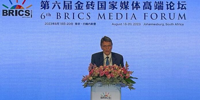 Neste sábado (19), o diretor-presidente da Empresa Brasil de Comunicação (EBC), Hélio Doyle, participou da cerimônia de abertura do Fórum de Mídia do Brics, em Joanesburgo, na África do Sul. O evento reúne representantes de agências e emissoras públicas da Rússia, Índia, China e África do Sul, além de veículos de outros países que não pertencem ao bloco, como Espanha, Angola, Zimbábue e Egito.