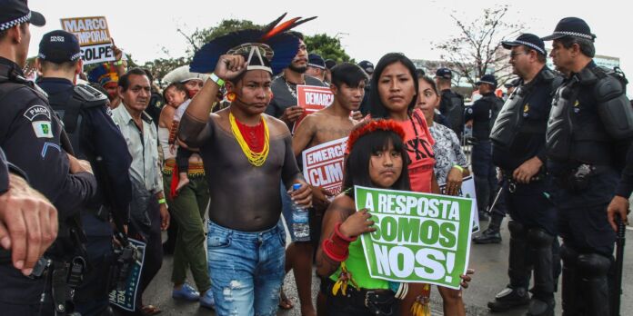 No julgamento, os ministros discutem o chamado marco temporal. Pela tese, defendida por proprietários de terras, os indígenas somente teriam direito às áreas que estavam em sua posse no dia 5 de outubro de 1988, data da promulgação da Constituição Federal, ou que estavam em disputa judicial na época. Os indígenas são contra o entendimento.