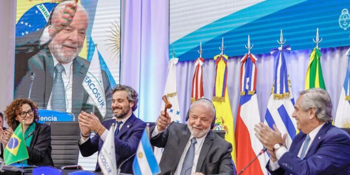 Mais cedo, na cidade argentina de Puerto Iguazú, que fica na região da tríplice fronteira entre Brasil, Argentina e Paraguai, o presidente Lula participou da 62ª Cúpula do Mercado Comum do Sul (Mercosul) e Países Associados. Na ocasião, o governo brasileiro assumiu a presidência temporária do bloco regional pelo próximo semestre [https://agenciabrasil.ebc.com.br/internacional/noticia/2023-07/nao-temos-alternativa-que-nao-seja-uniao-diz-lula-na-argentina].