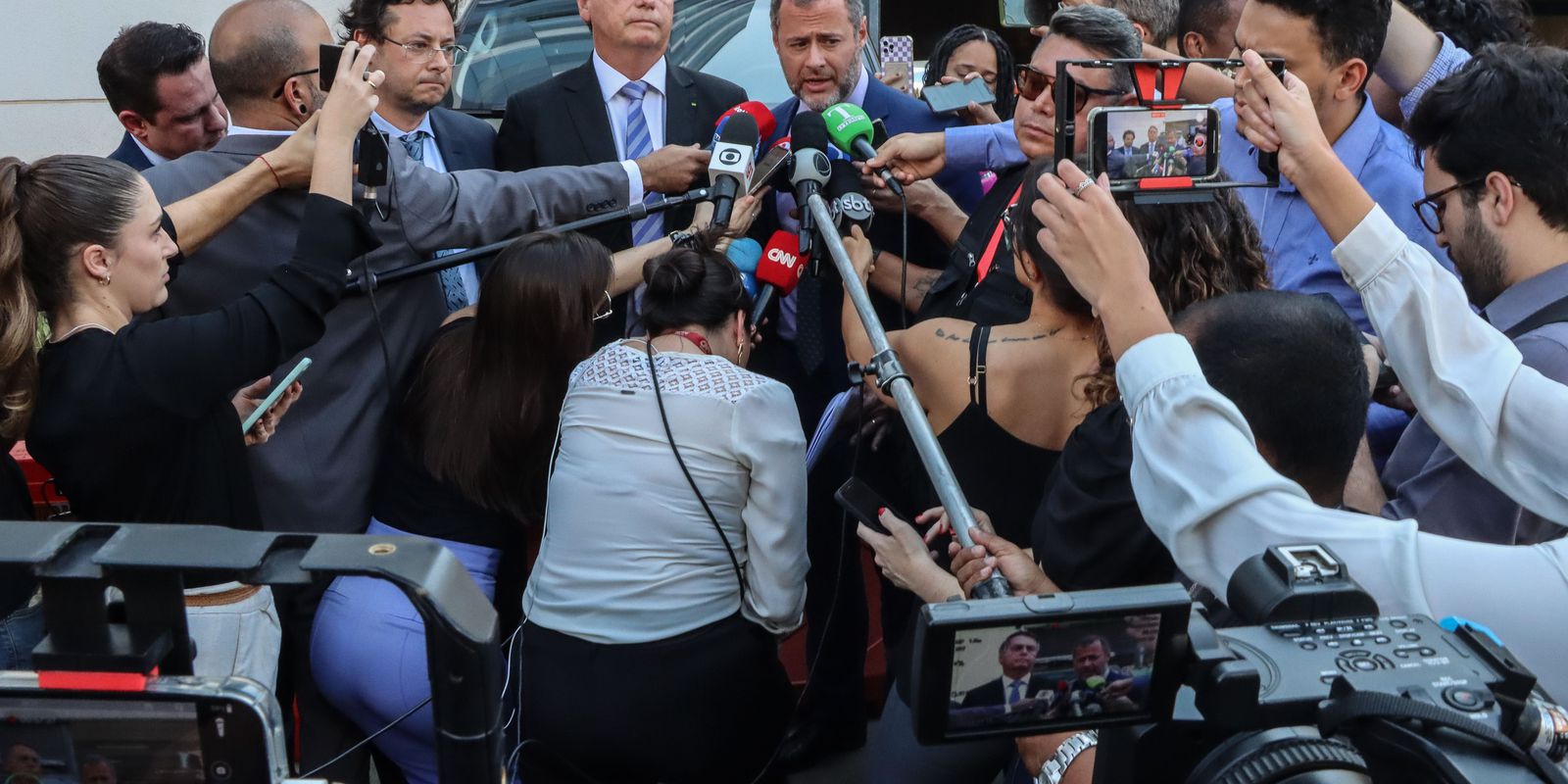 “A minha presença aqui hoje é em função do inquérito. Foi conhecido como dos empresários, ok? Fui incluído nele depois de vários meses, tendo em vista a mensagem que eu tinha passado, em especial, para Meyer Nigri, que é empresário em São Paulo, que eu conheço desde antes das eleições de 2018”, afirmou Bolsonaro a jornalistas.