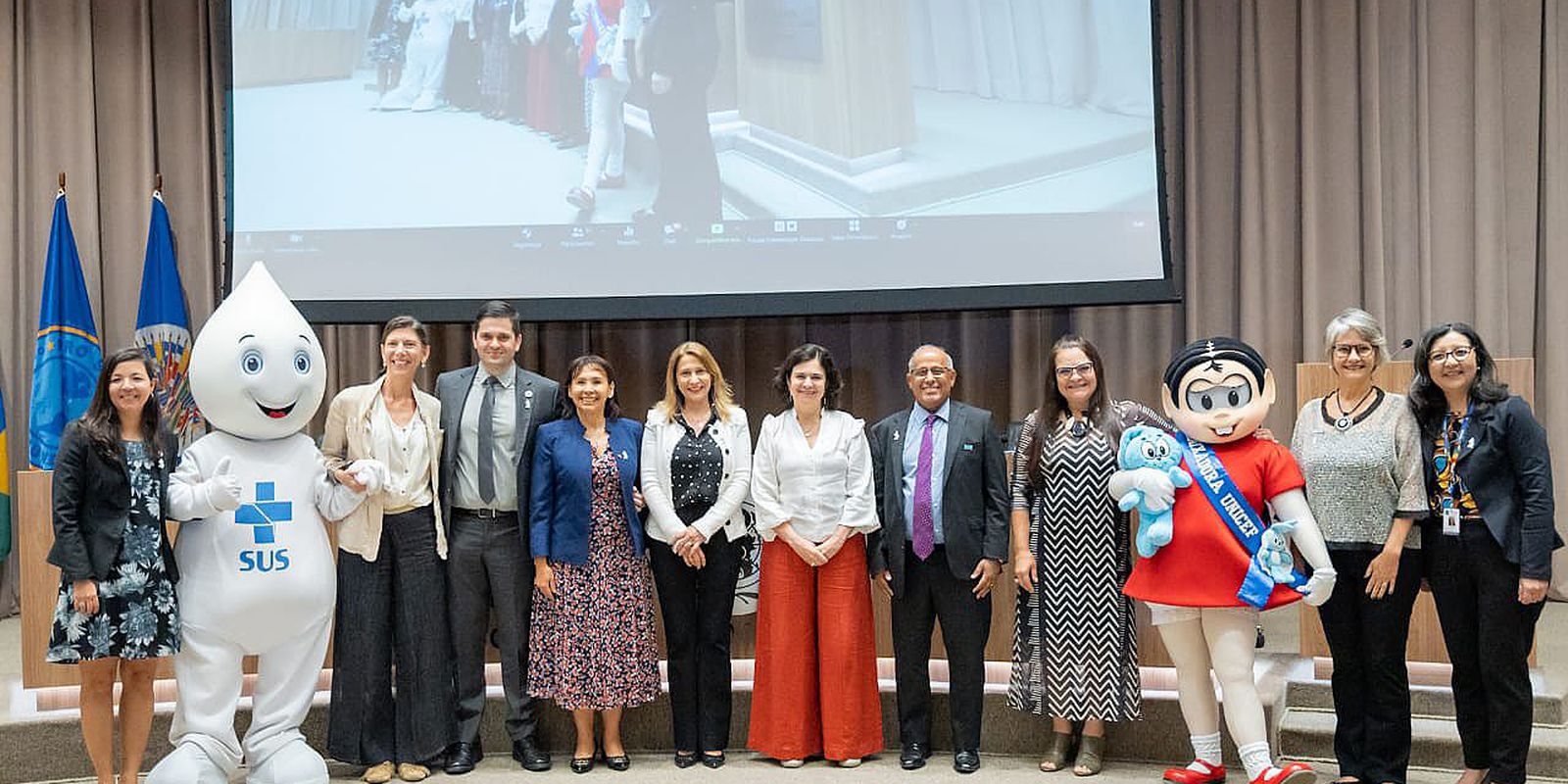Os personagens brasileiros Zé Gotinha, criado paras campanhas de vacinação infantil, e Mônica, dos quadrinhos de Mauricio de Sousa, nomeada embaixadora do Unicef no Brasil, desde 2007, estiveram presentes na divulgação do relatório, pela manhã.