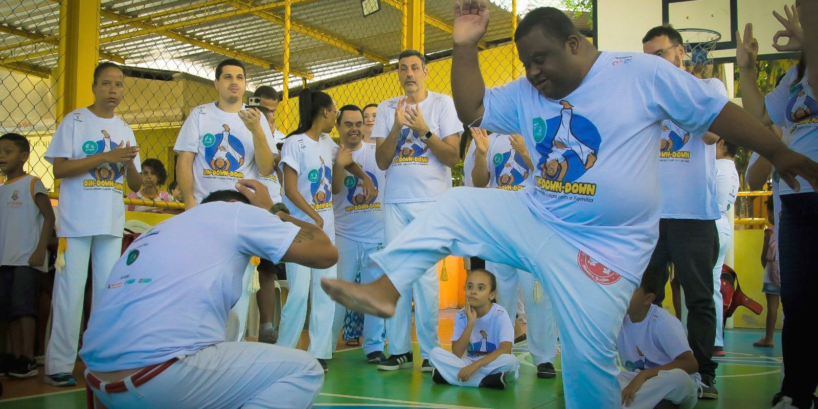 Às 16h30, haverá uma roda de capoeira de integração com os alunos do projeto Din Down Down: Construindo Laços com a Família. Eles pertencem às quatro turmas das escolas municipais de Niterói assistidas pelo projeto: Portugal Neves (Piratininga), Santos Dumont (Bairro de Fátima), Alberto Torres (Centro) e André Trouche (Barreto). Os estudantes se juntarão à turma da Associação de Pais e Amigos dos Excepcionais (Apae) Niterói em uma grande roda de capoeira, encerrando as atividades do dia.