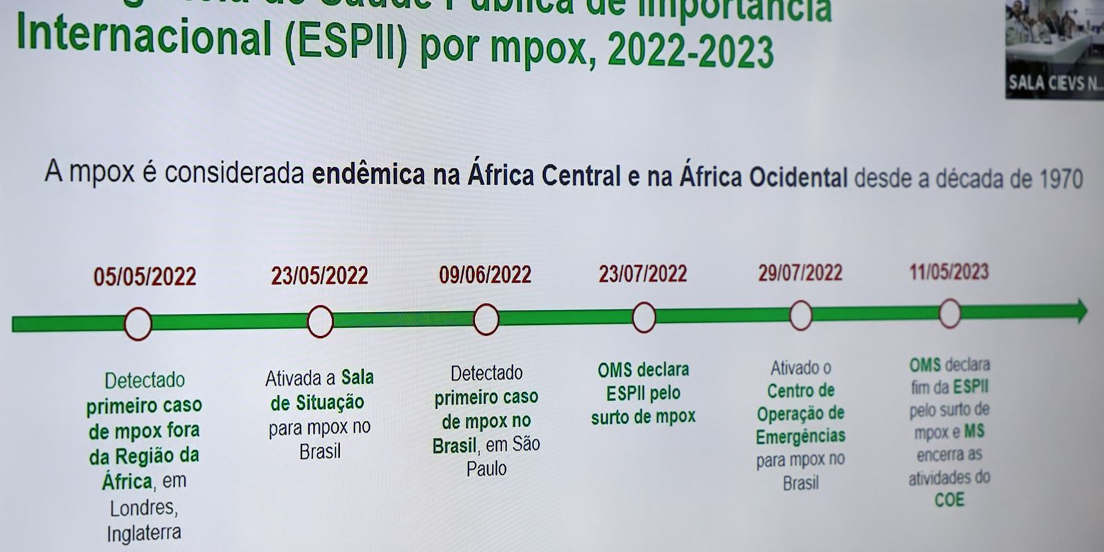 Na instalação do COE, a secretária de Vigilância em Saúde, Ethel Maciel, lembrou que, dentro das configurações da nova emergência global instalada pela OMS, o Brasil está no nível 1, o menos alarmante, com cenário de normalidade para mpox e sem casos da nova variante. O último óbito pela doença em solo brasileiro foi registrado em abril de 2023.