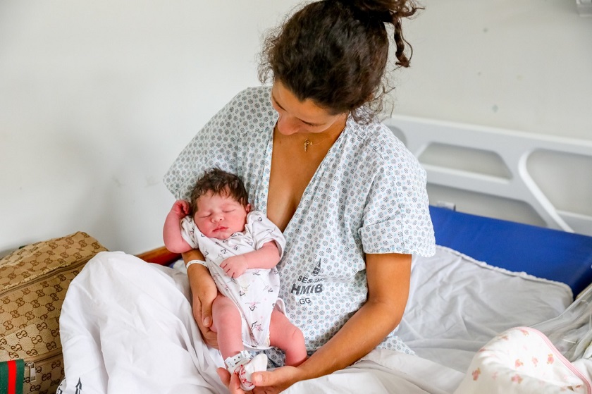 A futura mamãe de 32 anos entrou na unidade com 10 cm de dilatação. Foram necessárias apenas duas contrações para que a bebê começasse a coroar – ou seja, para que o topo da sua cabecinha pudesse ser visto. Não havia tempo para mais nada. Entre a chegada de Thaís na unidade e o nascimento de Ana Beatriz, foram só cinco minutos.