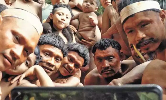 Nas telas, aparece o registro de uma expedição da Funai realizada em 2019 na fronteira da Amazônia peruana para garantir a integridade de povos ancestrais. “A gente ficou muito tempo num ambiente fechado, no estúdio, e exibir o filme nessa sala, compartilhando esse momento com a experiência de tantas vidas, é incrível”, contou Bruno Palazzo, que assina a trilha sonora do filme. “O desafio dessa missão foi como desenhar a música do filme com o som e a imagem que ele [o diretor] conseguiu captar”.