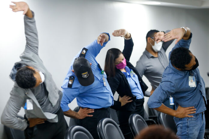 Durante a ginástica laboral, a fisioterapeuta Beatriz Pessoa movimentou os convidados. “Acho que esses momentos de pausa e atenção ao corpo trazem calma e ajudam a desenvolver hábitos melhores, o que se reflete na qualidade do trabalho e reduz o estresse diário”, explicou. Em seguida, a psicóloga Amanda Brito abordou os cuidados do homem com a própria saúde e deu dicas sobre como se cuidar.