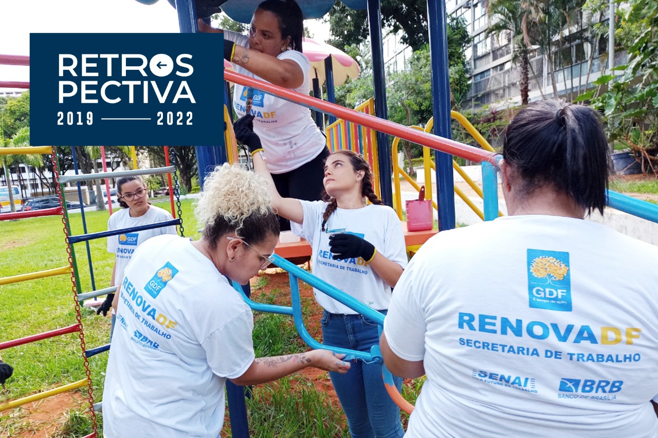 Outro projeto de destaque é o RenovaDF, que consiste em um programa de qualificação profissional da Secretaria de Trabalho em parceria com a Secretaria de Governo e as administrações regionais, sendo que os cursos são de iniciação profissional e aplicados pelo Serviço Nacional de Aprendizagem Industrial do Distrito Federal (Senai/DF), com duração de 240 horas. Os alunos recebem capacitação profissional, com noção básica na área de construção civil, com aulas de forma presencial e, enquanto se qualificam, recuperam os espaços públicos de nossa cidade. Com investimento de R$ 50,7 milhões, foram certificados 11.171 alunos.