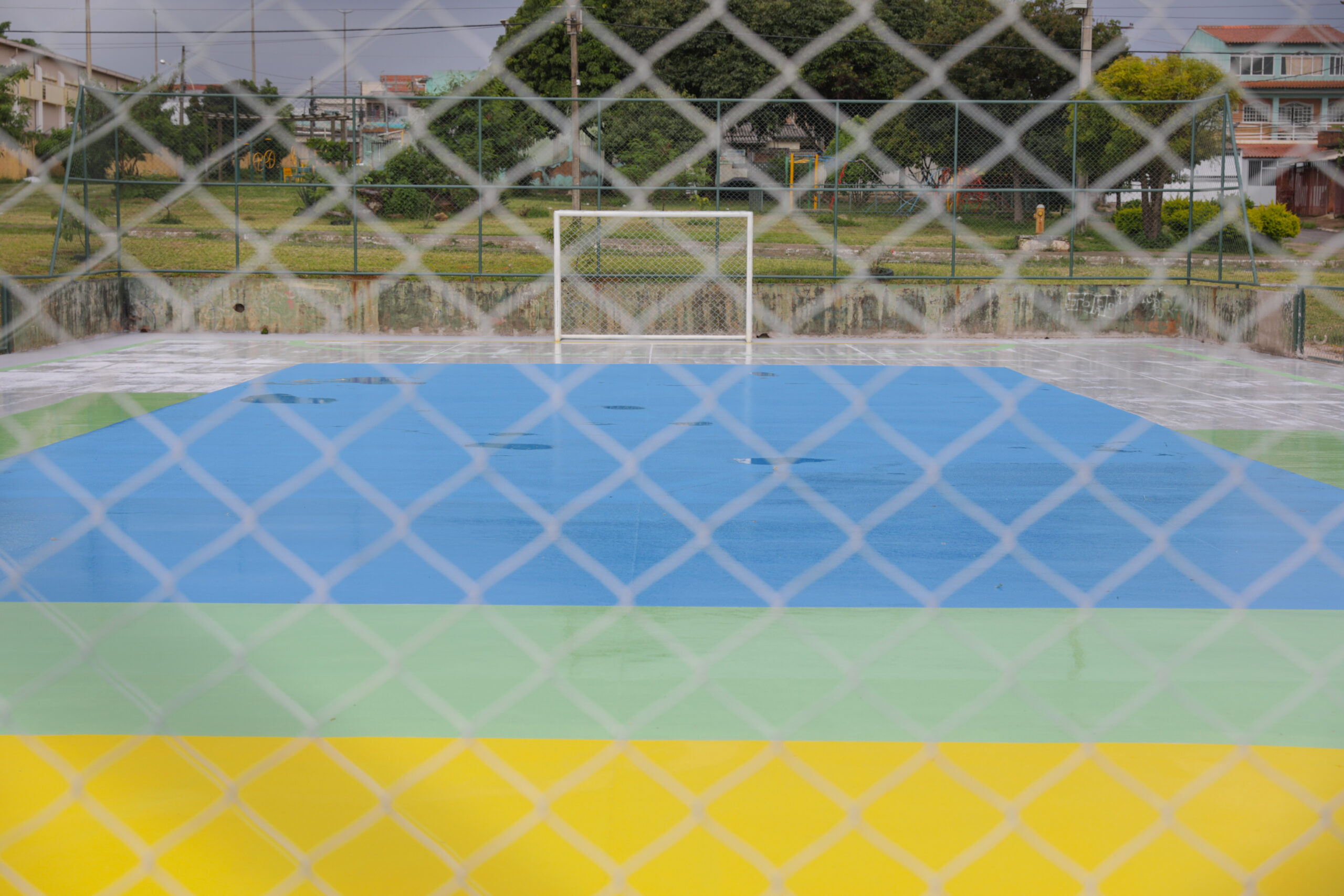 São quadras poliesportivas antigas – algumas sem passar por reforma adequada desde a década de 90 – que agora ganham outro patamar. Duas delas, por sinal, ainda tinham o piso de asfalto. O serviço inclui reforma e pintura do piso, troca do alambrado, conserto e pintura das traves, além da reposição de tabelas de basquete.