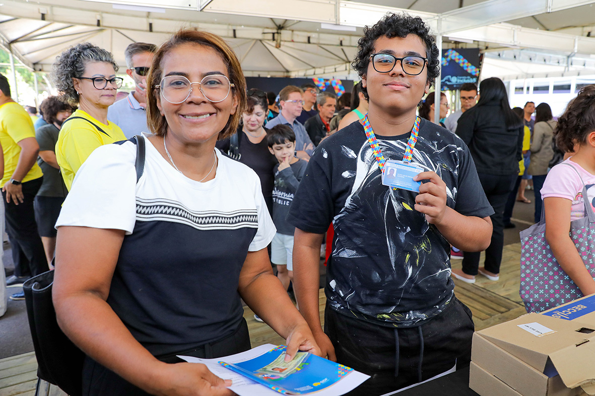 A servidora pública Sílvia Amélia Amaral, 51, foi ao evento com o filho Filipe Lucas Amaral, 16, para fazer a retirada da Carteira Física da Pessoa com Transtorno do Espectro Autista (Ciptea), e lembrou que ter o serviço próximo de casa ajuda muito, tanto para ela quanto para as demais famílias.