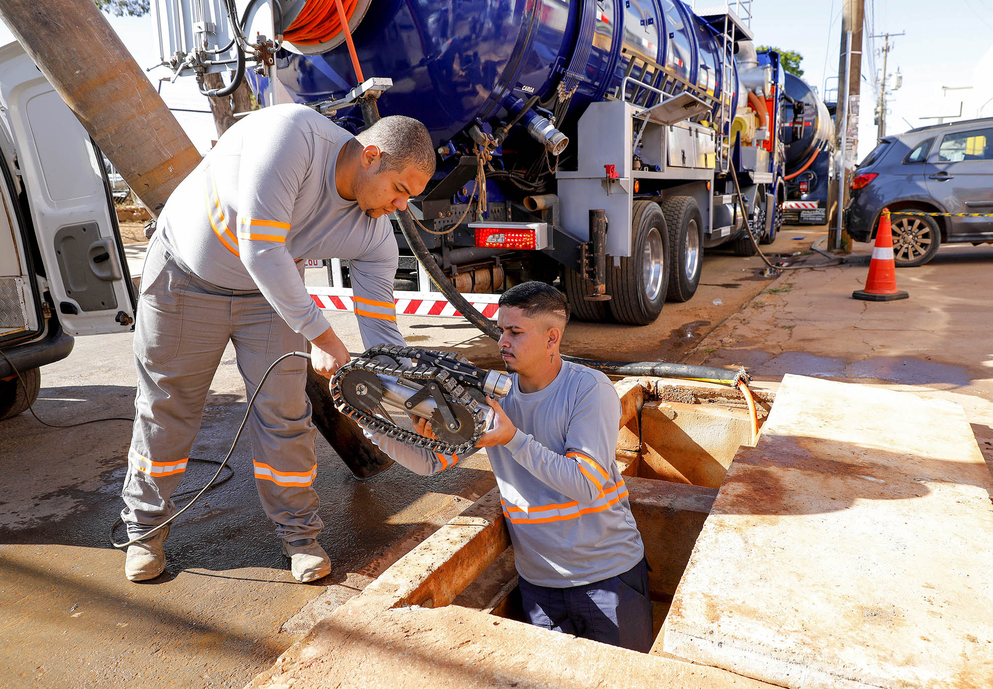 Hoje, esse serviço é feito por 20 caminhões-pipa adaptados com sistemas para sucção e hidrojateamento de resíduos e três robôs para inspeção por vídeo que auxiliam e otimizam o trabalho preventivo realizado por mais de 50 profissionais contratados pela Companhia Urbanizadora da Nova Capital (Novacap).