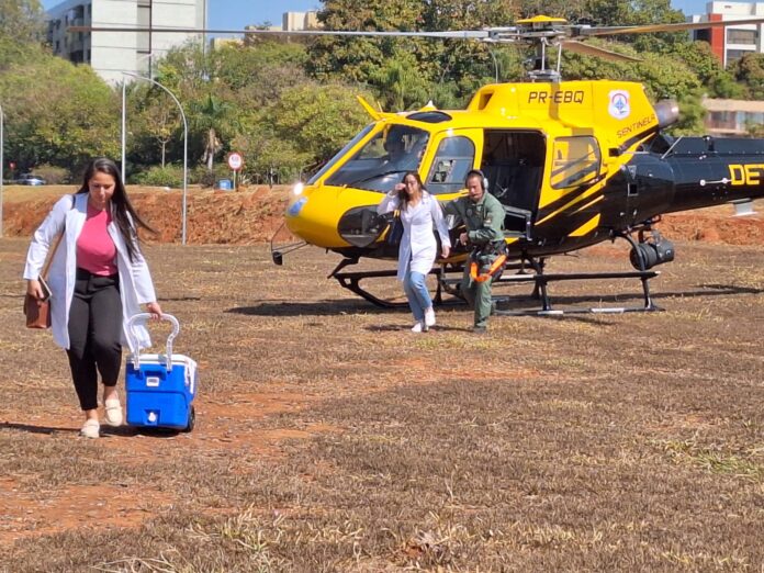 Na tarde desta sexta-feira (9), a aeronave do Departamento de Trânsito do Distrito Federal (Detran-DF), o Sentinela, transportou mais um coração para a realização de transplante no Distrito Federal. Este foi o 14º coração transportado pela equipe da Unidade de Operação Aérea (Uopa) neste ano.