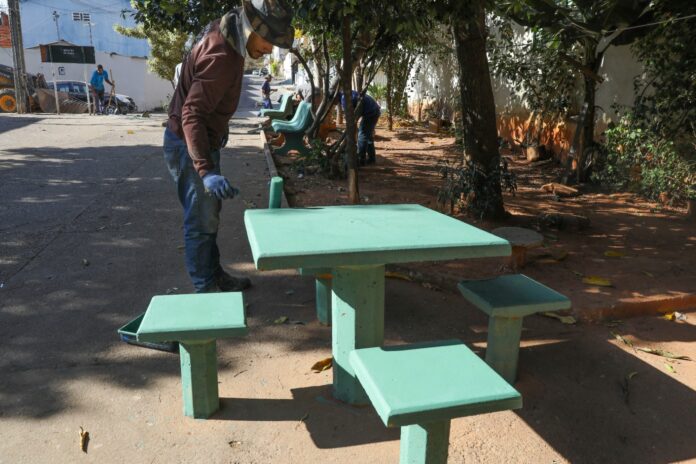 Serviços incluíram a retirada de brinquedos inadequados para o uso das crianças, limpeza das áreas, reposição de areia e pintura dos bancos