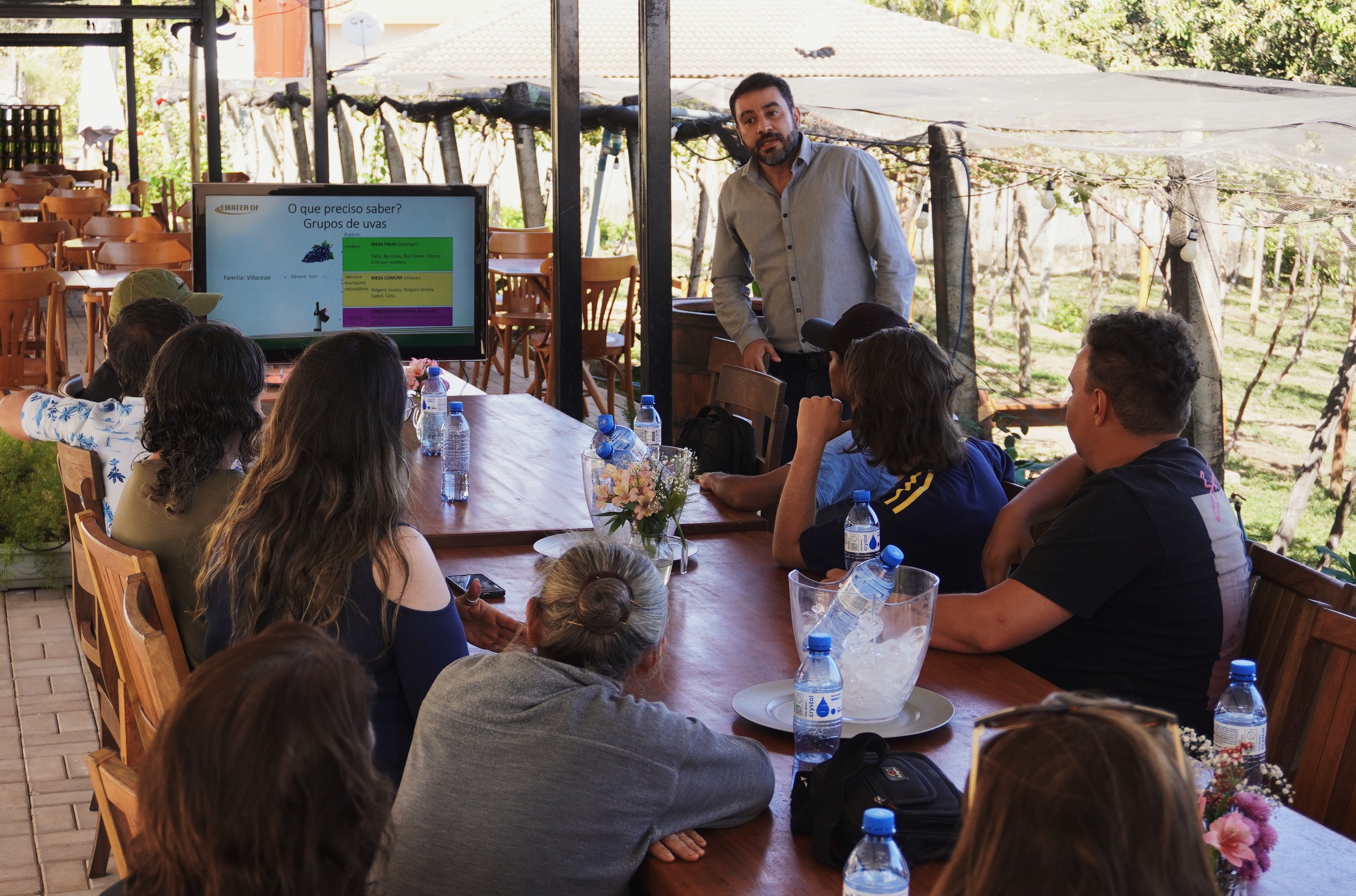 Produtores rurais da região do Paranoá participaram nesta quarta-feira (21) da palestra Desafios e Oportunidades no Cultivo da Uva, ministrada pelo coordenador do programa de fruticultura da Emater-DF, Felipe Camargo. A atividade foi realizada no Vinhedo Lacustre e fez parte da programação da Semana do Produtor Rural, organizada pela unidade local da Emater-DF no Paranoá, que vai até sexta-feira (23).