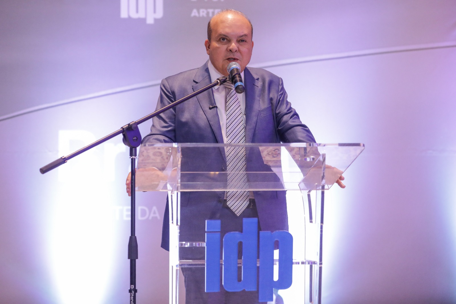 O governador Ibaneis Rocha participou, na noite desta terça-feira (22), do lançamento do livro Brasília, a arte da democracia, no Instituto Brasileiro de Desenvolvimento e Pesquisa (IDP), na Asa Norte. A obra homenageia os 65 anos da capital federal e foi desenvolvida pelo IDP em parceria com a FGV Arte — espaço de arte da Fundação Getúlio Vargas, no Rio de Janeiro.