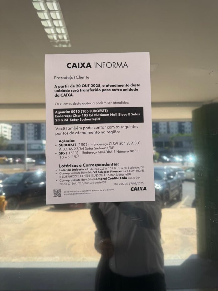 Uma onda de preocupação atinge milhares de moradores do sudoeste, no Distrito Federal, após o anúncio iminente do fechamento da única agência da Caixa Econômica Federal na região.