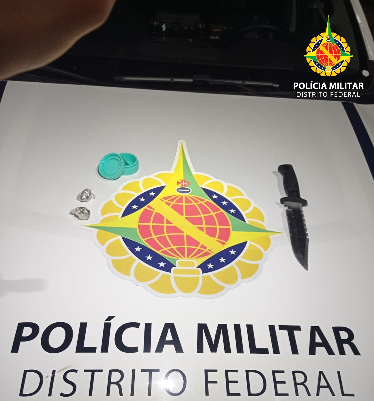 Durante a busca no interior do automóvel, foram encontradas duas porções de haxixe e uma faca estilo combate. Diante dos fatos, o condutor foi encaminhado à 15ª Delegacia de Polícia Civil, onde foi lavrado termo circunstanciado por porte de arma branca.