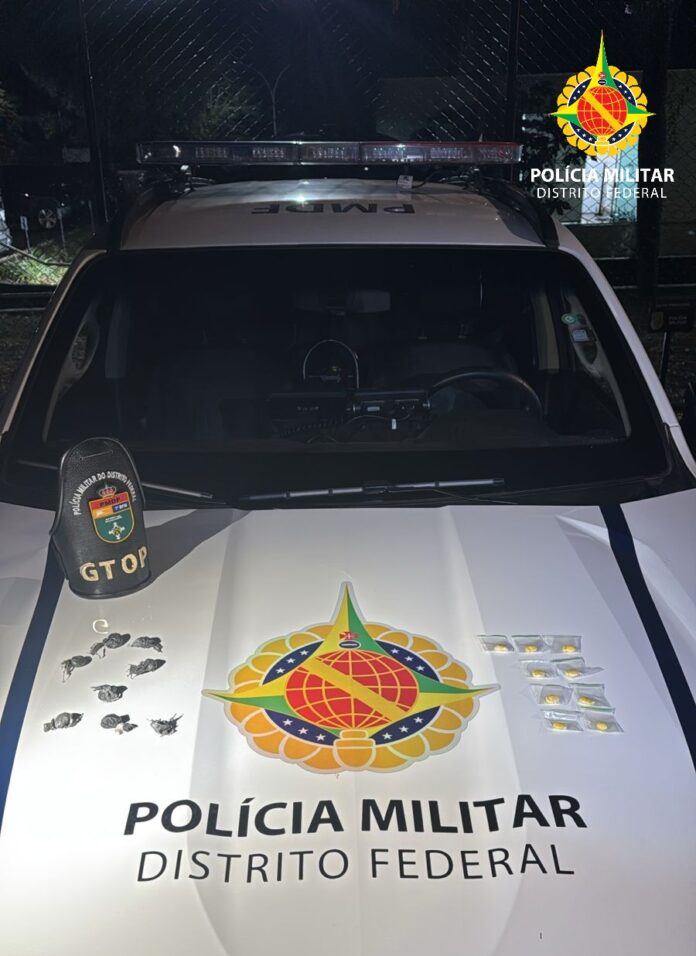 A intervenção da PMDF resultou na apreensão de nove porções de ecstasy e oito porções de maconha que estavam com os indivíduos.