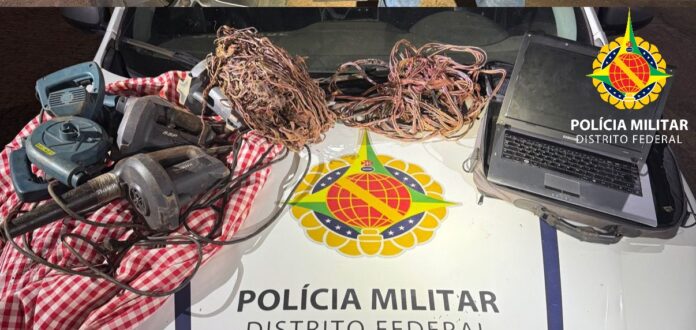 Os policiais avistaram o suspeito carregando diversos objetos em uma área conhecida pelo tráfico de drogas. Durante a abordagem, foram encontrados com ele um notebook, cinco ferramentas elétricas da marca Makita, aproximadamente 10 kg de fios de cobre e algumas ferramentas.